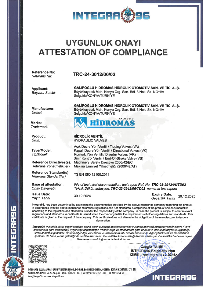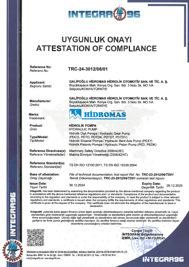 Gelişmiş kalite ve hizmeti teşvik ediyoruz. Zamanında teslimatı sağlayarak “ilk seferinde doğru” tutumunu benimserken daha az iade edilen ürün ve şikayet elde ediyoruz. Bağımsız denetimler, kaliteye olan bağlılığımızı gösterirken Hidromas olarak ürünlerimizle ilgili tüzel ve yasal gereklilikleri karşılıyoruz. ISO 9001, müşteri hizmetlerinde ve teslimatımızda mükemmelliğe ulaşmada yardımcı olurken Hidromas genelindeki performansı iyileştirmemize katkıda bulunuyor.